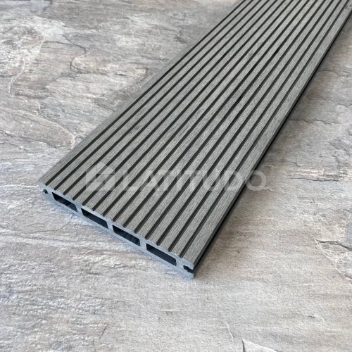 Террасная доска EasyDecking Wood-X из древесно-полимерного композита ДПК. Пустотелая. Доступные размеры, мм: 146х23х3010, 146х23х4010. Длина 3 и 4 метра. Поверхности: одна сторона с рельефной 3D-фактурой «под дерево», другая сторона «вельвет». Доступно 2 цвета: «Серый Микс», «Тик Микс». Фирменные комплектующие в цвет: уголок.