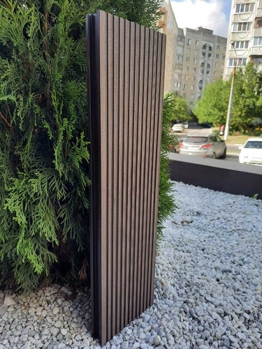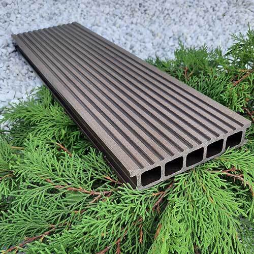 Террасная доска Latitudo Euro из древесно-полимерного композита ДПК. Пустотелая. Доступные размеры, мм: 139х27х3000, 139х27х4000, 139х27х6000. Поверхности: одна сторона шлифованное тиснение «под дерево», другая сторона «вельвет». Доступно 5 цветов: «Венге», «Шоколад», «Натур», «Антрацит», «Серый». Фирменные комплектующие в цвет: торцевая заглушка, уголок.