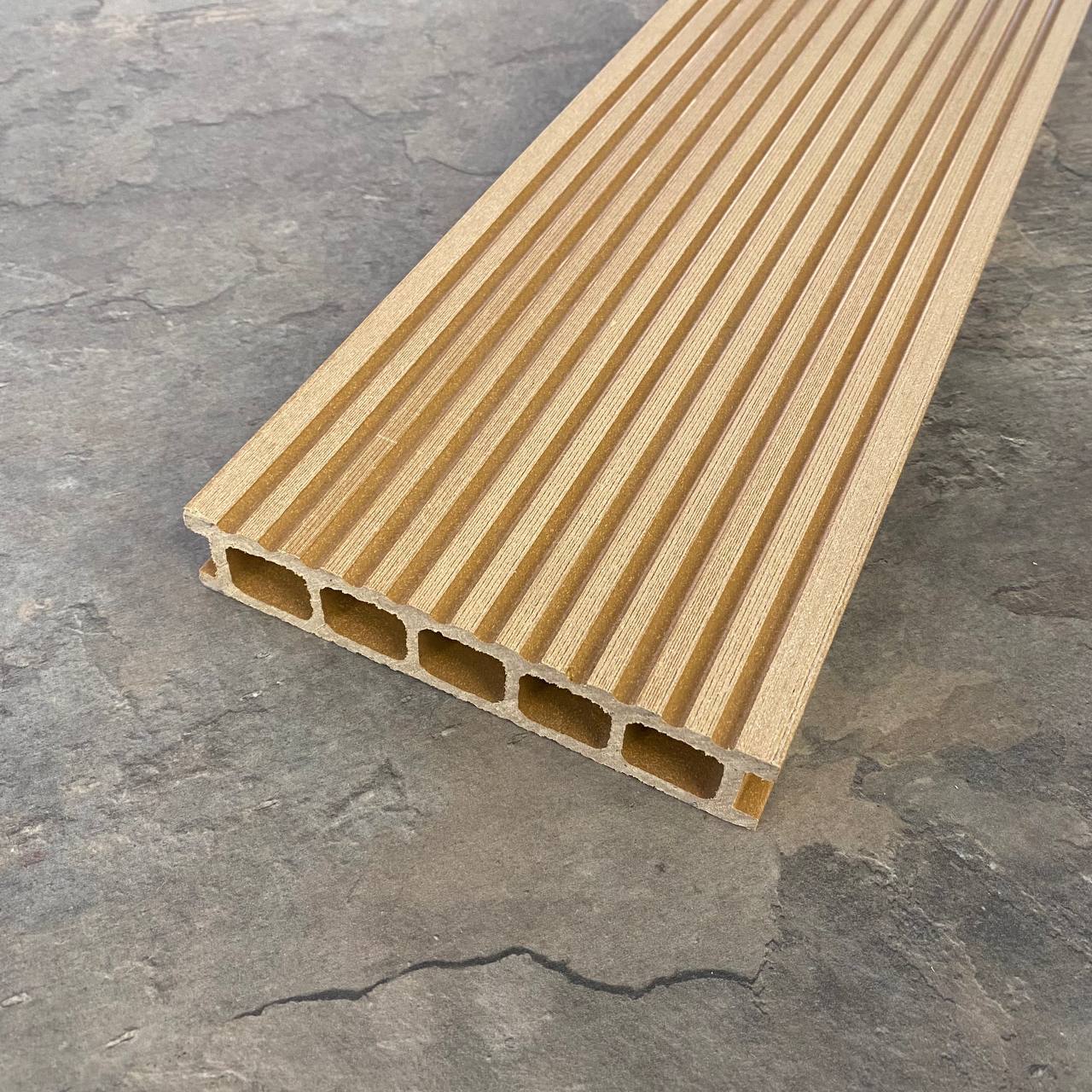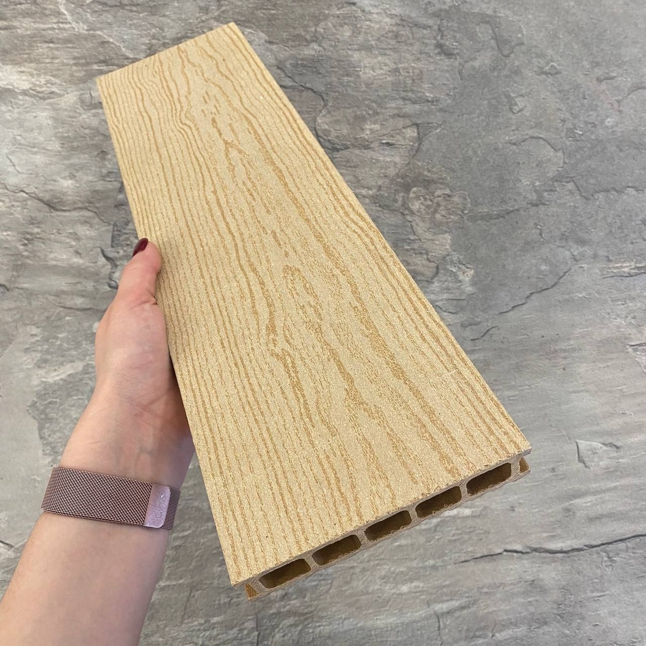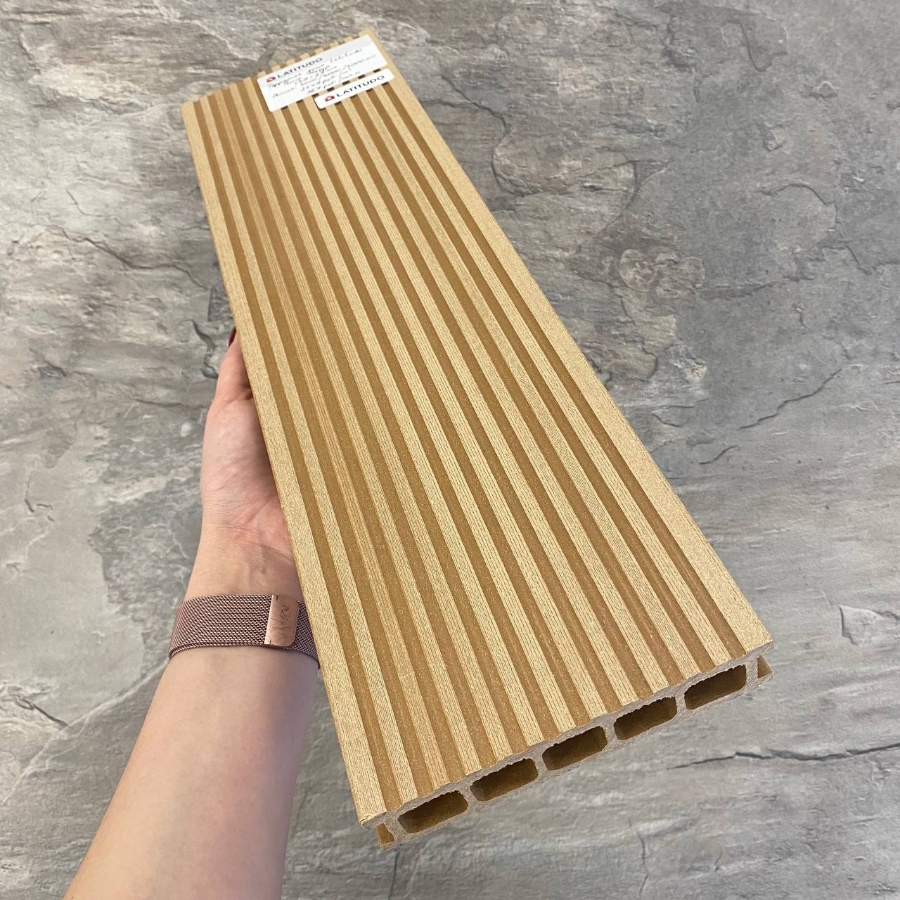 Террасная доска Latitudo Euro из древесно-полимерного композита ДПК. Пустотелая. Доступные размеры, мм: 139х27х3000, 139х27х4000, 139х27х6000. Поверхности: одна сторона шлифованное тиснение «под дерево», другая сторона «вельвет». Доступно 5 цветов: «Венге», «Шоколад», «Натур», «Антрацит», «Серый». Фирменные комплектующие в цвет: торцевая заглушка, уголок.