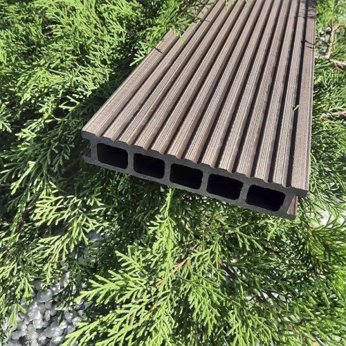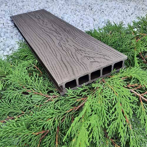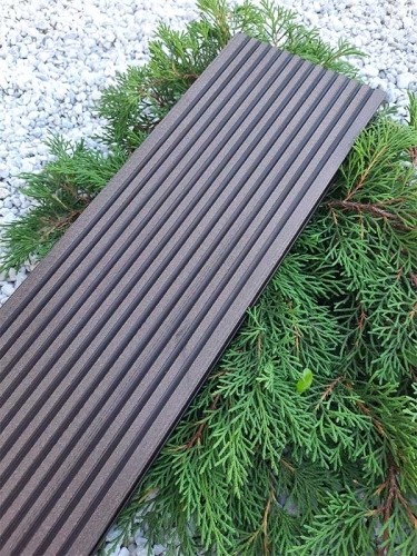 Террасная доска Latitudo Euro из древесно-полимерного композита ДПК. Пустотелая. Доступные размеры, мм: 139х27х3000, 139х27х4000, 139х27х6000. Поверхности: одна сторона шлифованное тиснение «под дерево», другая сторона «вельвет». Доступно 5 цветов: «Венге», «Шоколад», «Натур», «Антрацит», «Серый». Фирменные комплектующие в цвет: торцевая заглушка, уголок.