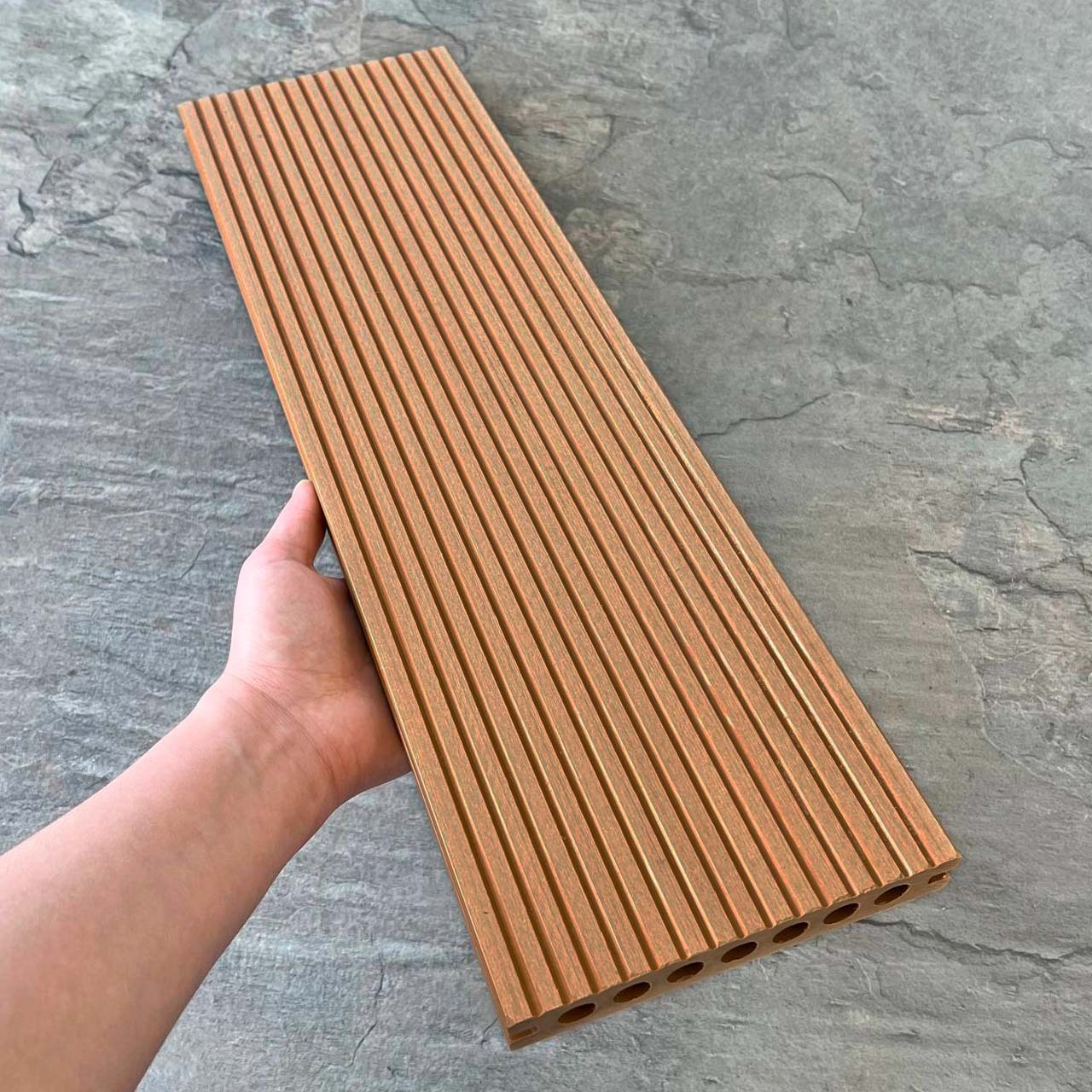 Террасная доска Latitudo PRO 2 из древесно-полимерного композита ДПК усиленная. Пустотелая. Доступные размеры, мм: 145х22х3000, 145х22х4000, 145х22х6000. Длина 3, 4 и 6 метров. Поверхности: одна сторона с рельефной 3D-фактурой «под дерево», другая сторона «вельвет». Доступно 5 цветов: «Венге», «Каштан», «Орех», «Серый», «Натур». Фирменные комплектующие в цвет: уголок, ступень, заборная доска.