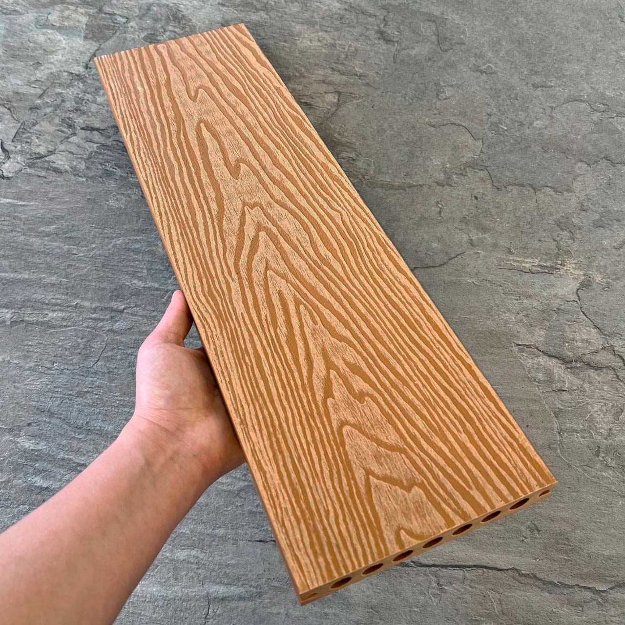 Террасная доска Latitudo PRO 2 из древесно-полимерного композита ДПК усиленная. Пустотелая. Доступные размеры, мм: 145х22х3000, 145х22х4000, 145х22х6000. Длина 3, 4 и 6 метров. Поверхности: одна сторона с рельефной 3D-фактурой «под дерево», другая сторона «вельвет». Доступно 5 цветов: «Венге», «Каштан», «Орех», «Серый», «Натур». Фирменные комплектующие в цвет: уголок, ступень, заборная доска.