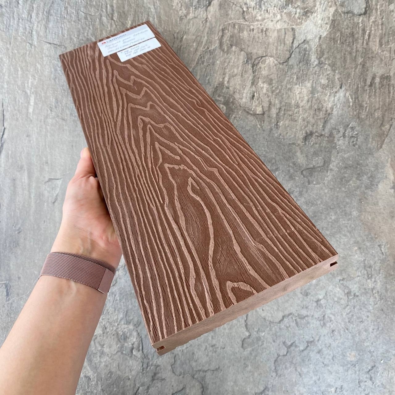 Террасная доска Latitudo Solid из древесно-полимерного композита ДПК. Полнотелая. Доступные размеры, мм: 150х21х3000, 150х21х4000. Длина 3 и 4 метра. Поверхности: одна сторона с рельефной 3D-фактурой «под дерево», другая сторона «вельвет». Доступно 6 цветов: «Венге», «Каштан», «Орех», «Серый», «Графит», «Натур». Фирменные комплектующие в цвет: уголок, ступени, заборная доска.
