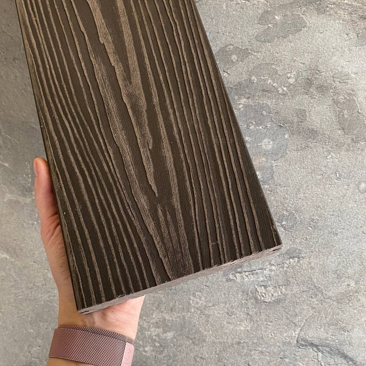 Террасная доска Latitudo Solid-152 из древесно-полимерного композита ДПК. Полнотелая. Доступные размеры, мм: 152х20х3000, 152х20х4000. Длина 3 и 4 метра. Поверхности: одна сторона с рельефной 3D-фактурой «под дерево», другая сторона «вельвет». Доступно 4 цвета: «Венге», «Графит», «Орех», «Серый». Фирменные комплектующие в цвет: ступень, уголок, заборная доска.