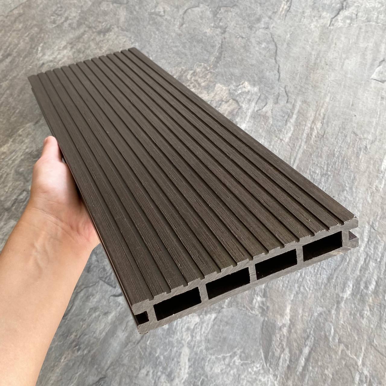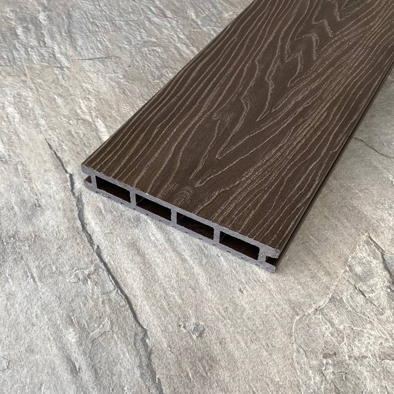 Террасная доска Latitudo Vintage из древесно-полимерного композита ДПК усиленная. Пустотелая. Доступные размеры, мм: 150х24х3000, 150х24х4000. Длина 3 и 4 метра. Поверхности: одна сторона с рельефной 3D-фактурой «под дерево», другая сторона «вельвет». Доступно 4 цвета: «Венге», «Графит», «Орех», «Серый». Фирменные комплектующие в цвет: ступень, уголок, заборная доска.