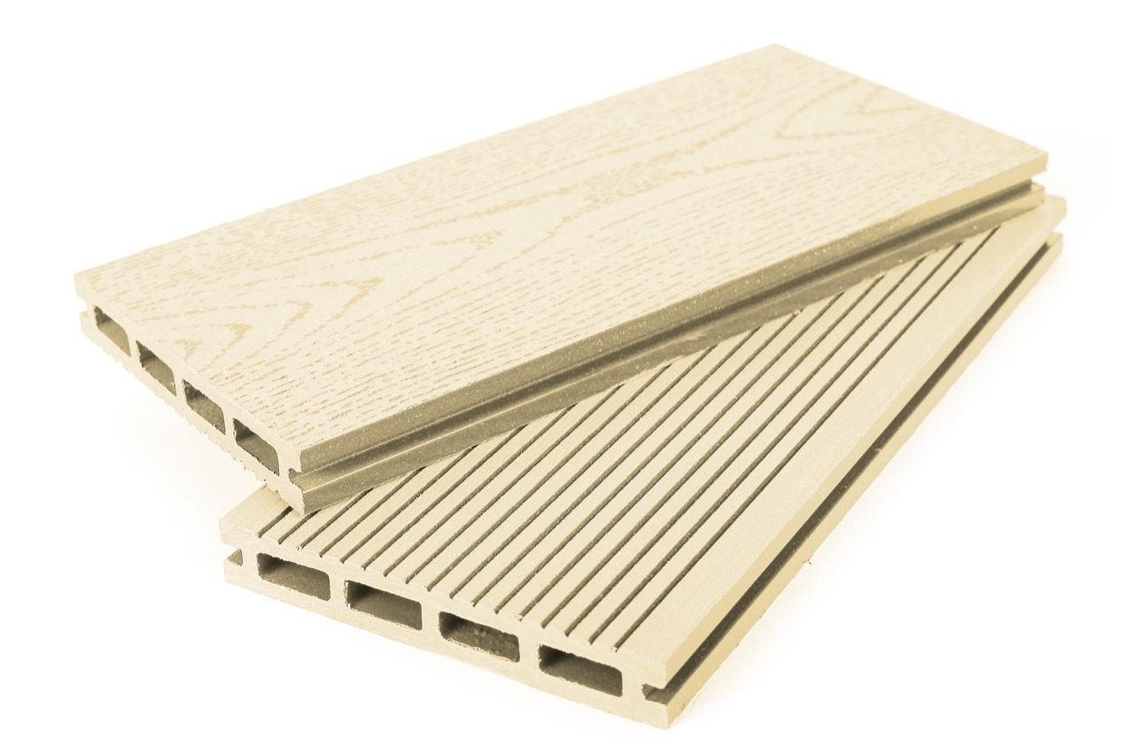 Террасная доска пустотелая Слоновая кость 140×22 мм используется  при обустройстве уличных настилов, покрытий детских и спортивных площадок, полов террас, балконов, веранд, патио, морских пирсов, уличных бассейнов; наружных стен хозяйственных построек, заборов и ограждений.