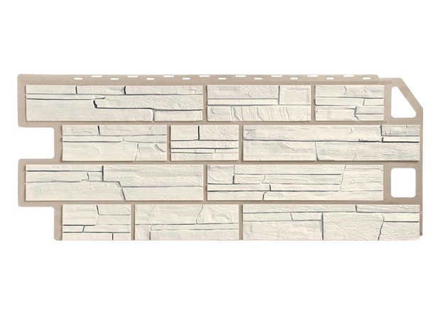 Цокольный сайдинг Файнбер серии Сланец Мелованный Белый - внешний вид панелей не отличается от кладки с плоским сланцем, многократно превосходя натуральный материал по таким показателям как срок службы и износостойкость. Фасадные панели FineBer серии Сланец это изысканная коллекция фасадных панелей, дизайн которых придает фасаду любого здания легкости, света и свежести.