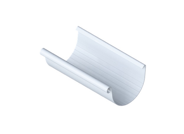 Желоб водосточный серии Элит с продольным рифлением, которое обеспечивает ему жесткость, ускоряет движение потока воды и препятствует налипанию грязи на внутренней поверхности желоба.