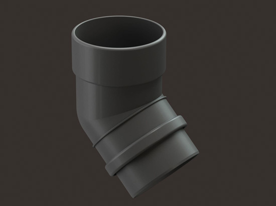 Колено 45° Деке люкс позволяет сделать переход от воронки к трубе, а также обход архитектурных элементов фасада под углом 45°.